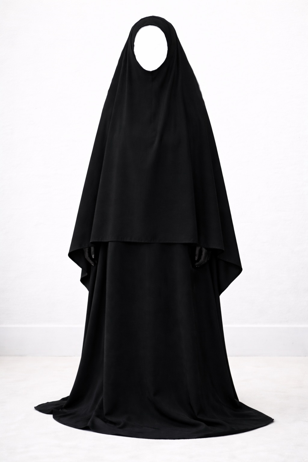 L’une des conditions du voile légiféré étant que le vêtement soit ample, opaque et ne dessine pas les formes, nous avons fait le choix d’un tissu plus structuré, garantissant une meilleure tenue et une opacité optimale.